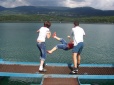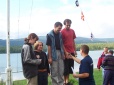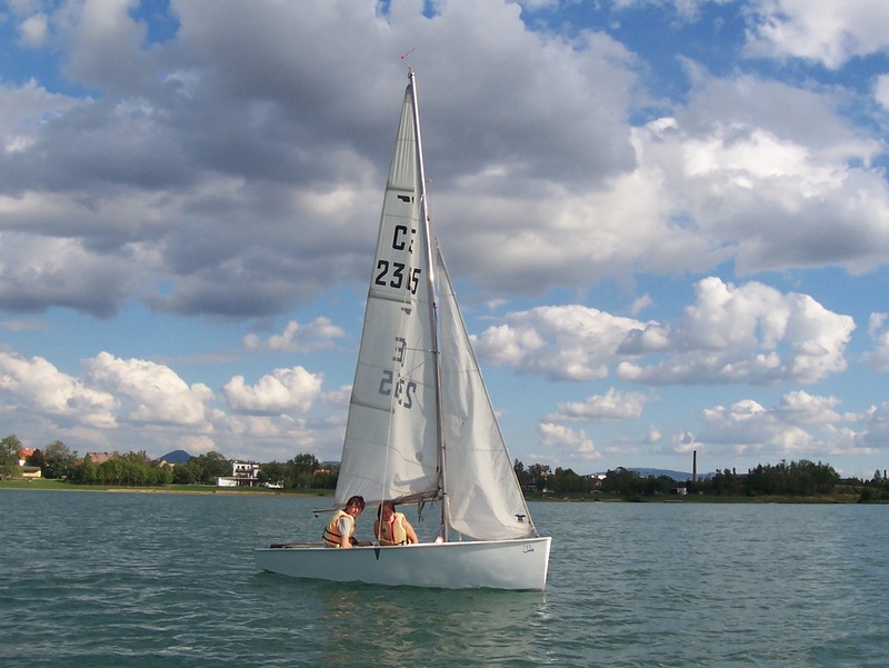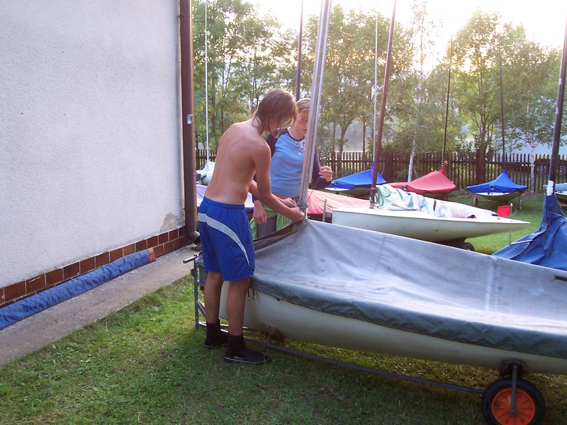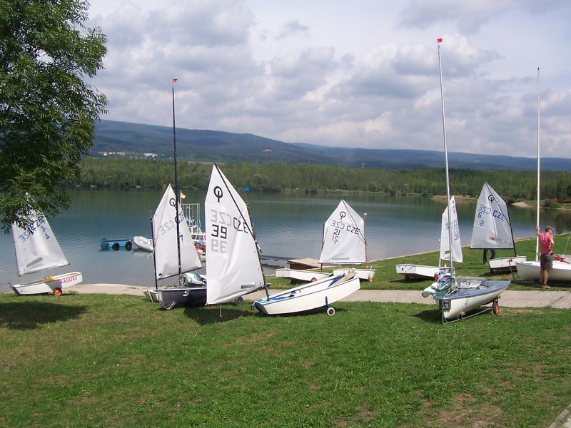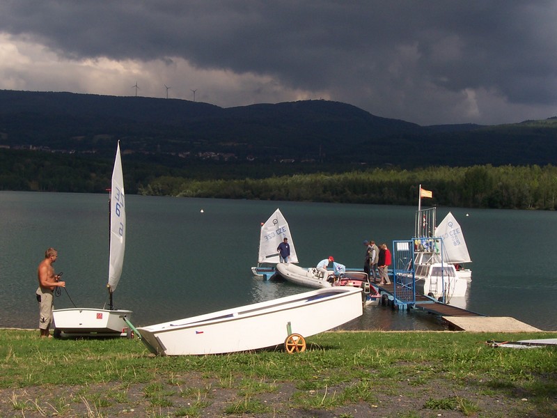 První den soustředění, sobota 12.8., zpočátku vypadal jachtařsky neslavně. Až po 2. hodině odpolední se počasí umoudřilo a hladinu jezera zčeřil příjemný