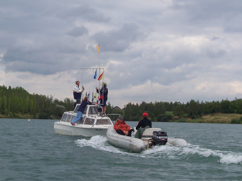 plavby. Psána byla na 4 kola po obvodu jezera, ovšem díky zmíněné absenci větru byla zkrácena na 2 kola. Víc se neodjelo - když hlavní rozhodčí pocítil