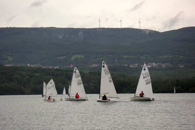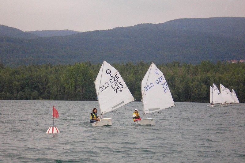 První Kontrolní závod byl poctěn větrem pouze na dvě hodiny v pondělí odpoledne, kdy se přes jezero přehnal déšť. To se projevilo na počtu odjetých rozjížděk - pouhé dvě.