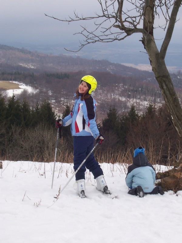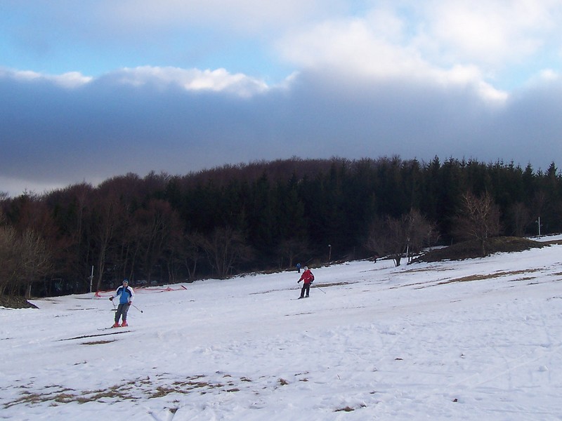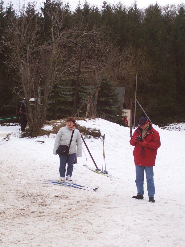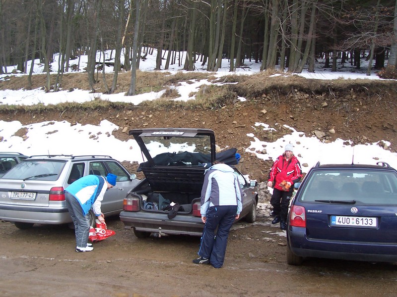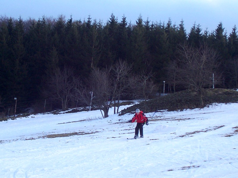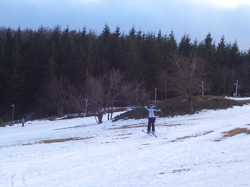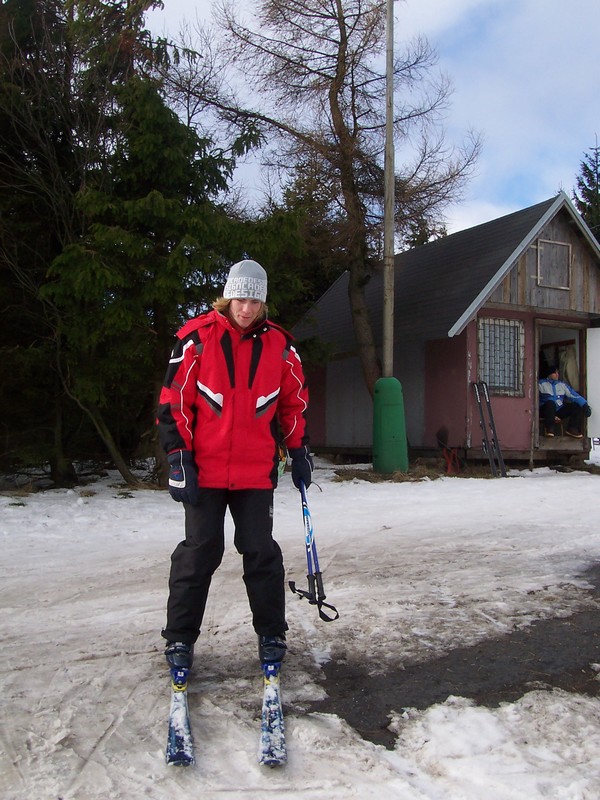Při přípravě na celodenní lyžování (díky teplé zimě za minima sněhu) |
